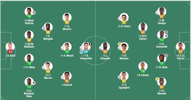 Статистический портал Sofascore оценил действия Яремчука на поле в 8,8 балла. Так как более высокую оценку не получил ни один другой футболист, следовательно - украинец признан лучшим игроком матча.