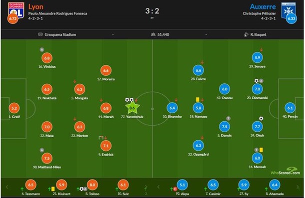 В субботу, 25 апреля, домашний матч с Осером в рамках 31-го тура французской Лиги 1 Лион выиграл со счетом 3:2.